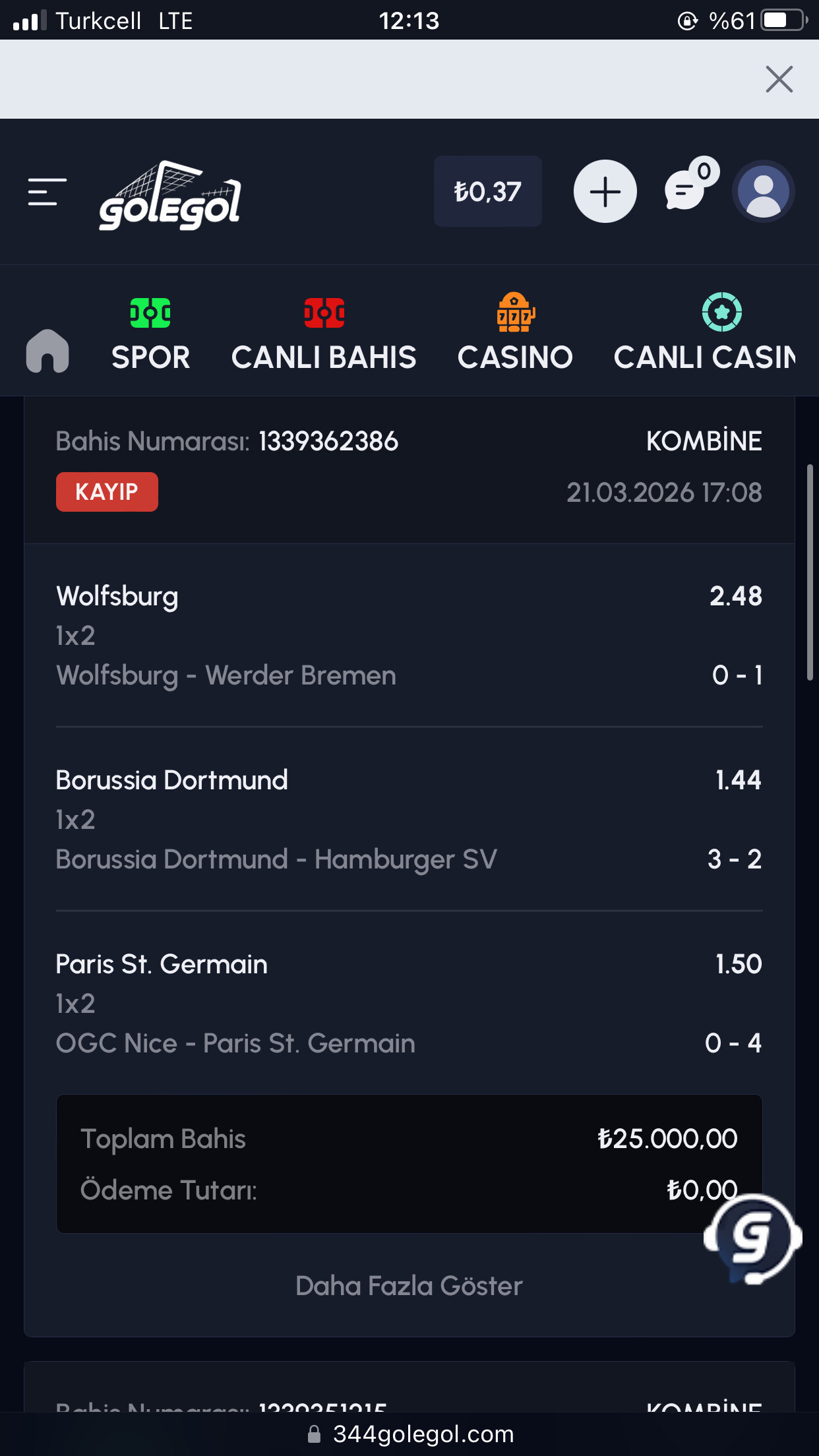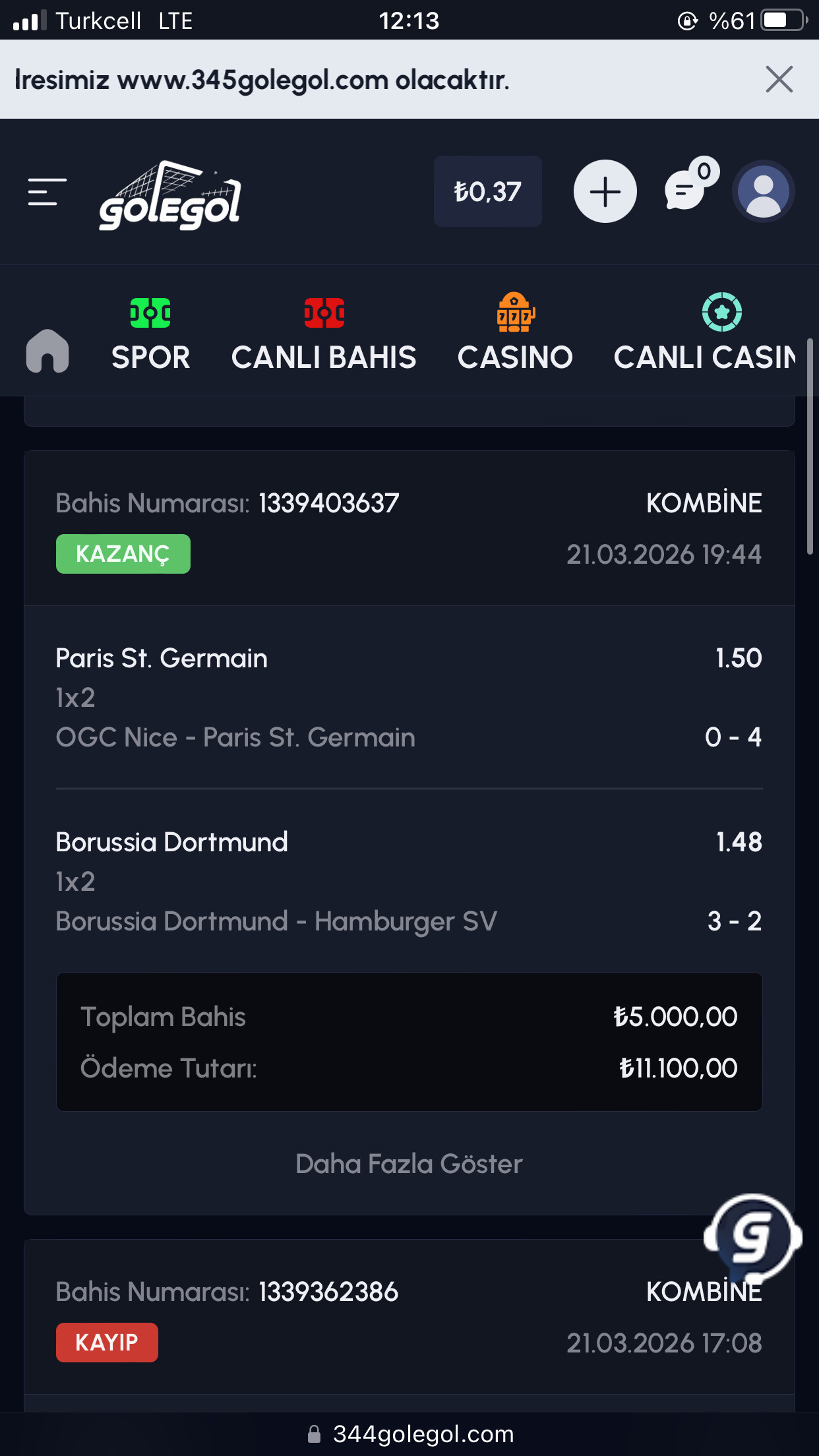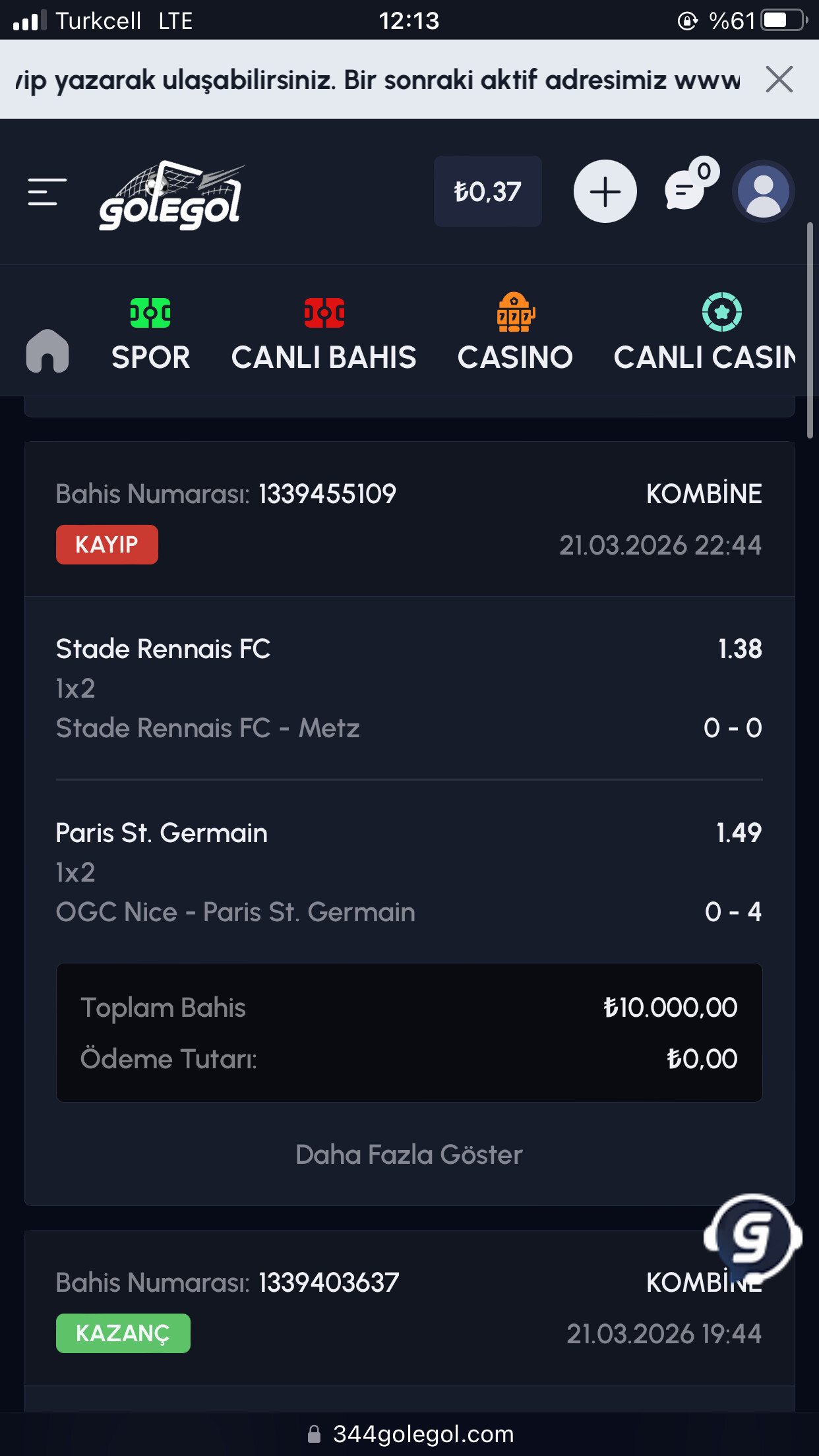 20.03.2026 tarihinde Golegol sitesi üzerinde kendi adıma açtığım hesaba 30.000 TL para yatırdım. Herhangi bir Bonus ya da promosyon almadan, tamamen kendi yatırdığım bakiye ile 23.03.2026 tarihine kadar majör liglerden yalnızca maç sonucu üzerine 2’li ve 3’lü kombine kuponlar oynadım ve bu kuponlar sonucunda toplamda 182.000 TL kazanç elde ettim.