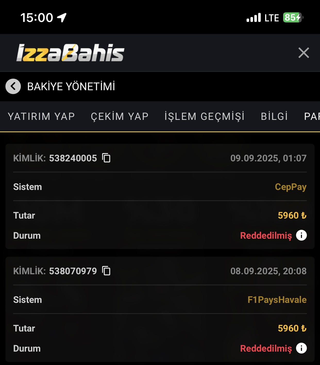 Merhaba izzabahisten kazandığım parayı çekim verdim bana kurallara aykırı oynadınız diye çekimi sürekli iptal ediyorlar .slot oyununda kurallara nasıl aykırı oynanıyor anlamış değilim .bana 3 gün içinde tarafınıza dönüş yapılacak denildi ama hala dönüş yapılmadı .risk birimi inceliyor diye sürekli geçiştiriyorlar.buraya yatırım yapmayın