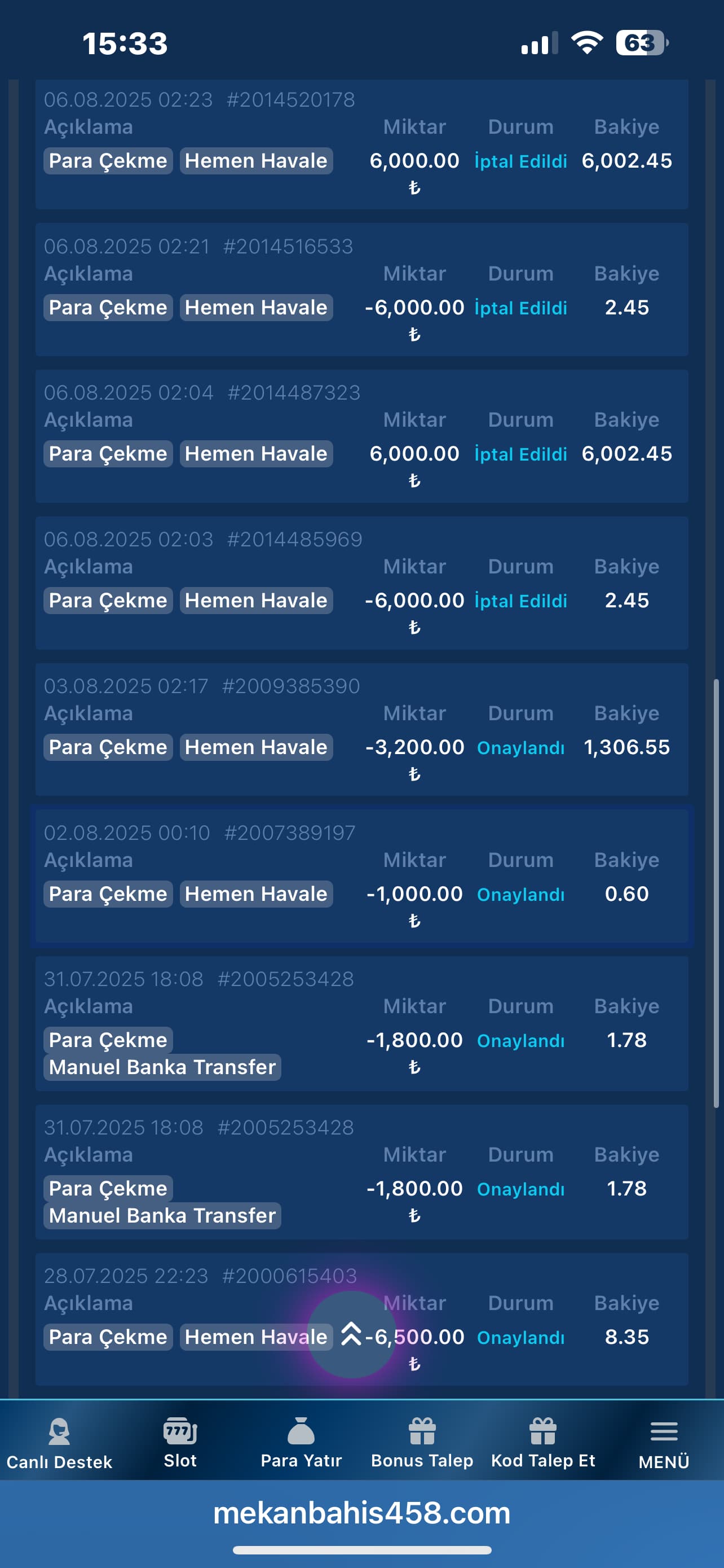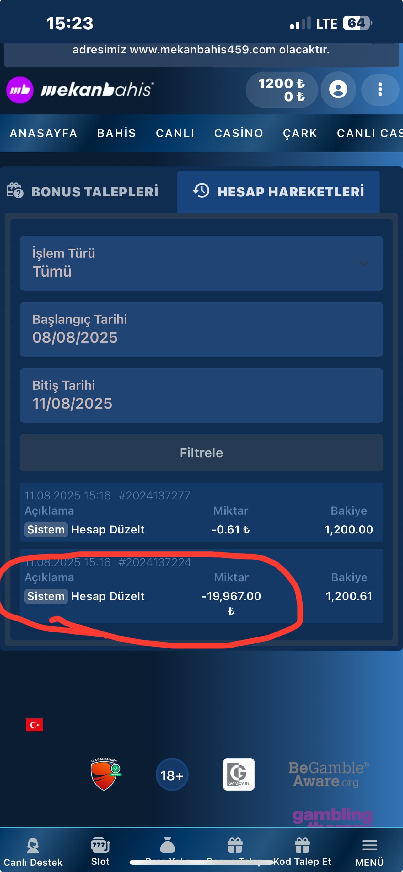 Sonrasında beni arayarak “Finans birimimiz kazancınızı sildi, ana bakiyeniz olan 1.200 TL’yi çekebilirsiniz” dediler. Sebep olarak ise ikinci bir hesabım olduğunu iddia ettiler. Benim kesinlikle ikinci bir hesabım yok! Delil istedim, “Finans birimi böyle dedi, başka bilgimiz yok” cevabını aldım.