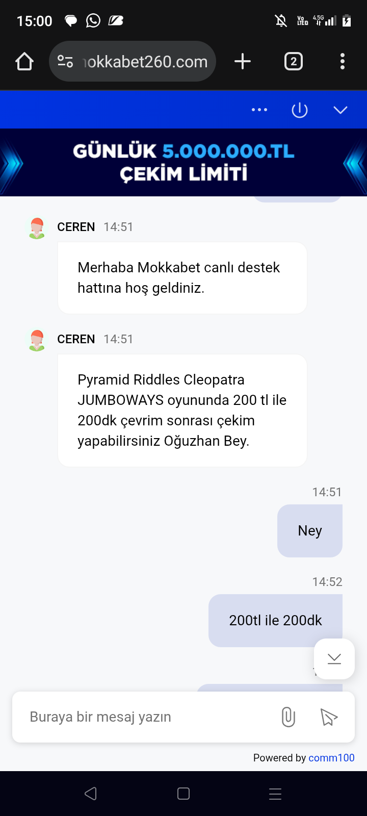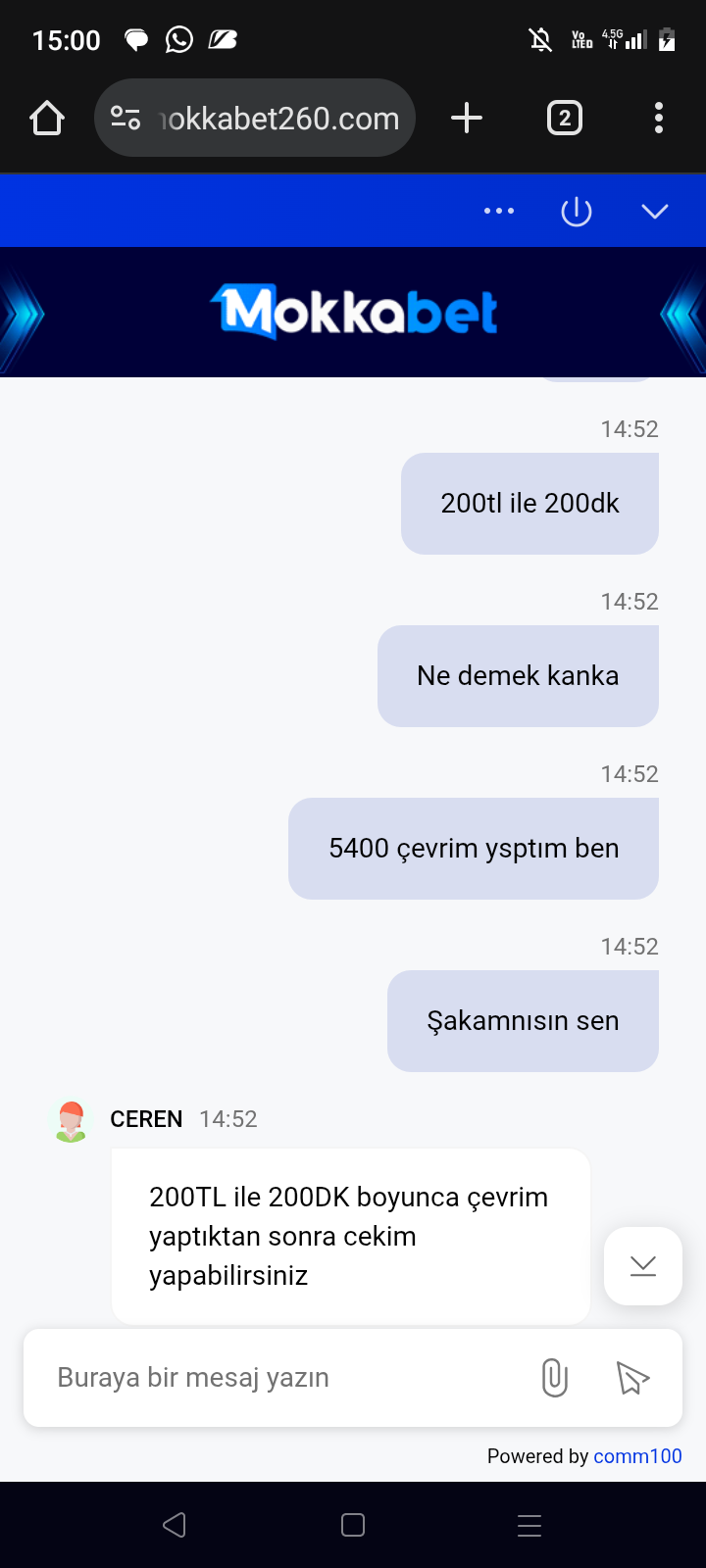 1000tl anapara çevrimi dışında herhangi bir şart yokken 5400tl çevrim sonrası talep verdim ve iptal edildi bu namussuz site ekteki görsellerde nasıl dalga geçtiği nasıl alay ettiği ortadadır. 200tl betten 200 DAKİKA BOYUNCA çevrim yap diyip çekim engeli attı