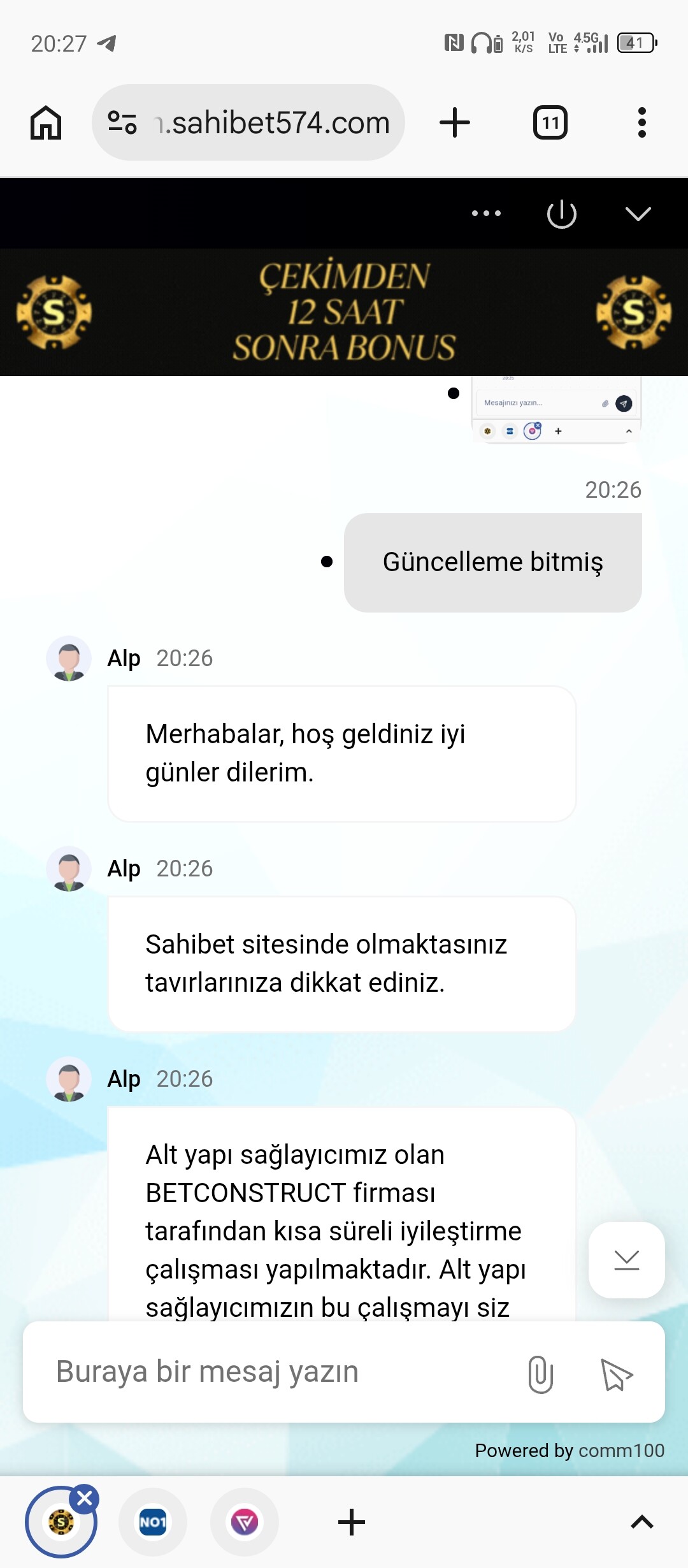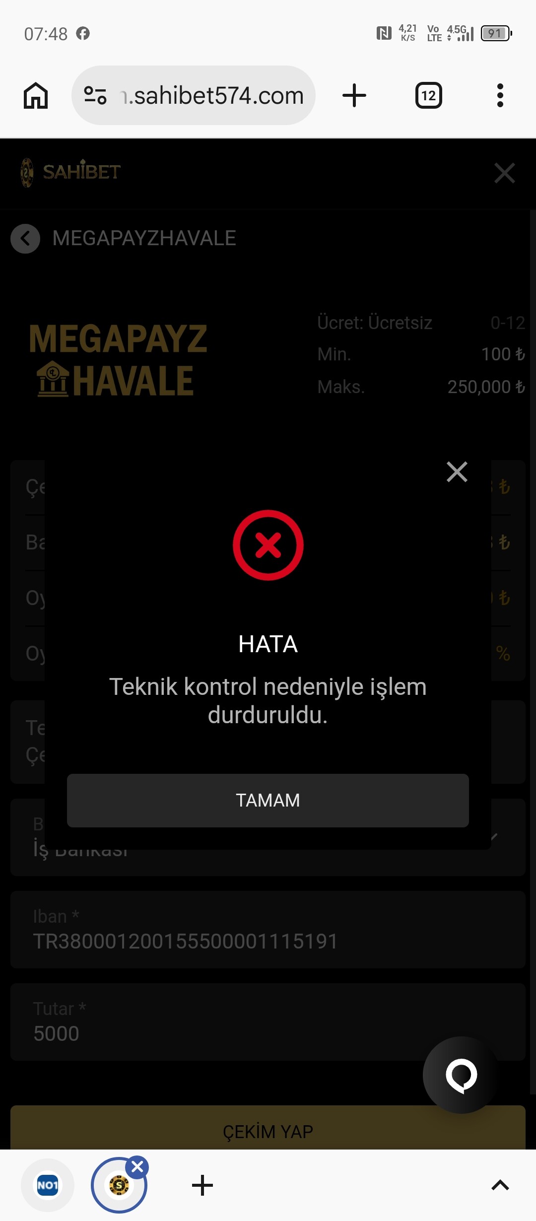 çekim yapmak istedim betcoda güncelleme olduğunu söylediler , 14-15 saat geçti üzerinden WhatsApp temsilcisi engelledi canlı destekten engellediler Bende bakiyemi anapara tutarı olan 5000tlye sabitleyip yatırdığım tutarı çekmek istedim 15 saat sonra hesabımın incelemede