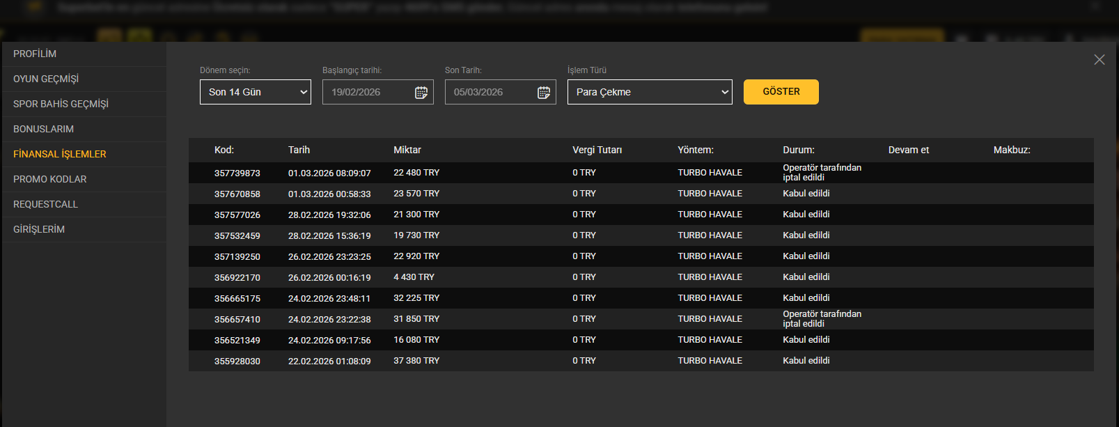 superbet231.com son 10 gunde kazanclarım yuksek oldugu ıcın rahatsız olacakkı capraz bahıs tespıt edıldı dıyerek bakıyeme ve kazancıma el koymustur asla gırmenızı onermıyorum tespıt edılen capraz bahıs hakkında kımse bır delıl gostermedı 21480tl parama el koyulmustur