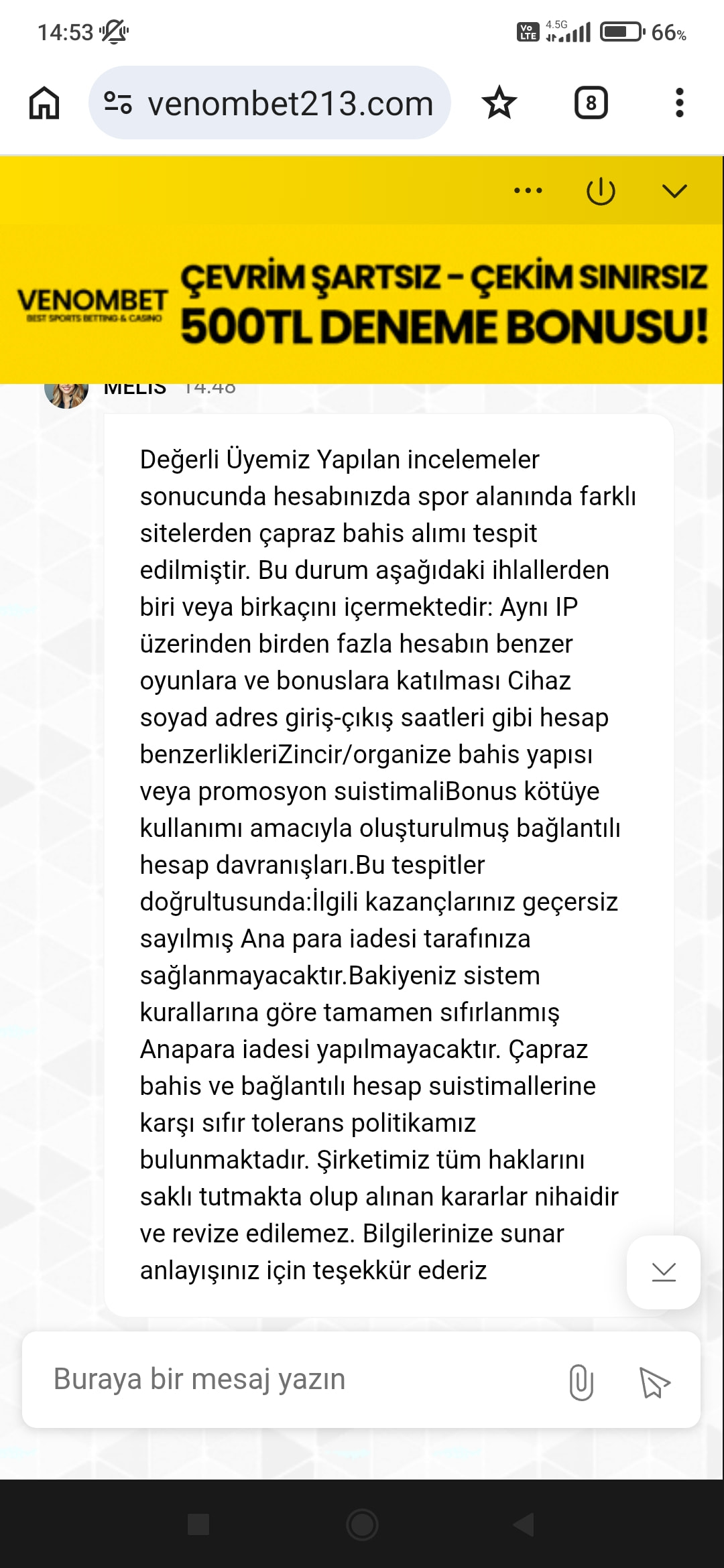 Venombet sitesi çekimi iptal etti bakiye sıfırladı çapraz bahis bahanesi ile ödeme yapmıyor